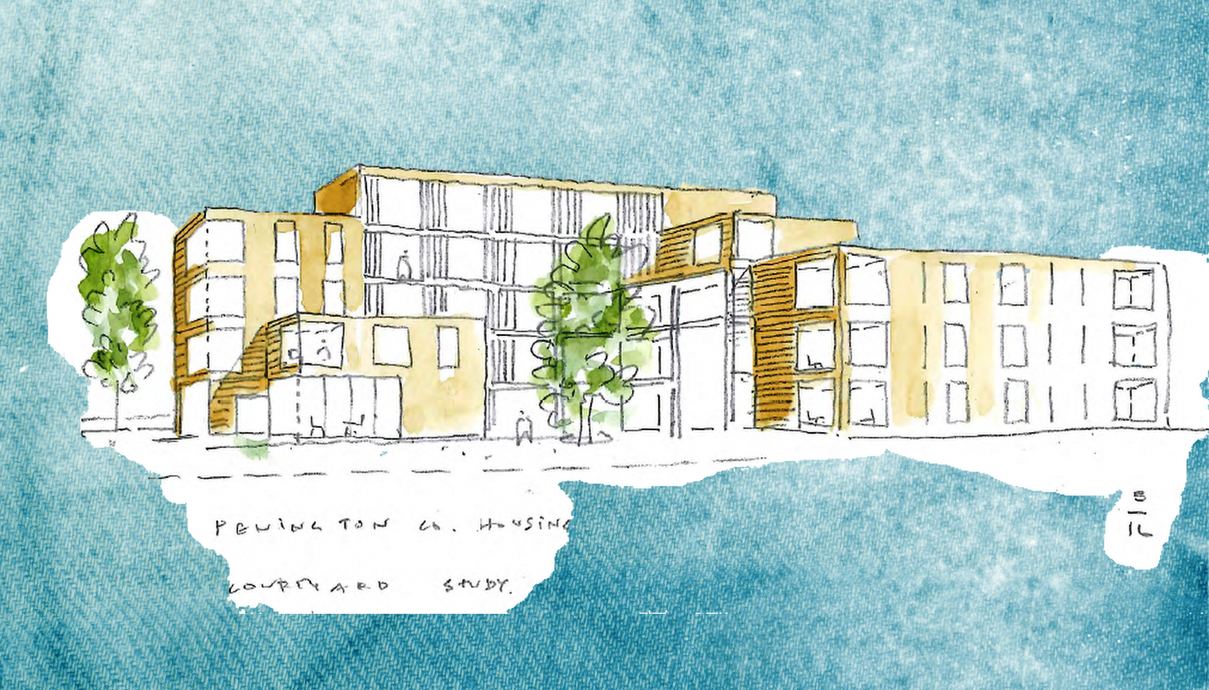 Un dibuix d'arquitecte de Penington House a la primera proposta de Glasgow. (PenHouse.org)